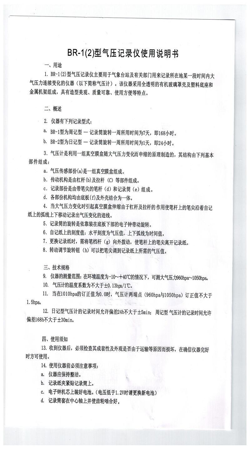 1,儀器的測量範圍:在環境溫度為-10~+40℃的情況下,可測大氣壓力960hpa~1050hpa